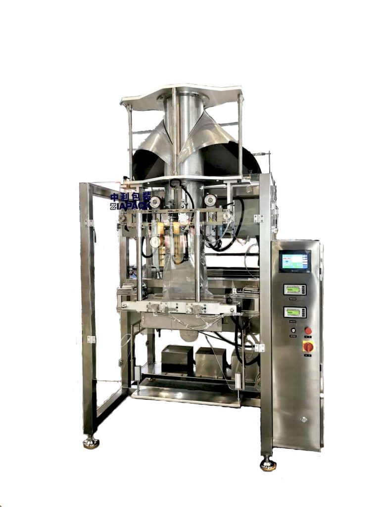 與多頭加藥系統集成, ZL series vertical bag forming filling packing machine is suitable for packaging many different kinds of products; such as puffy food, shrimp roll, peanut, popcorn, cornmeal, dried fruit, seed, small hardware,dumplings, vegetable, fruits and sugar etc.which shape is roll, slice and granule, as well as with widely application in chemical, food, pharmaceuticals, seeds and other industrial fields.