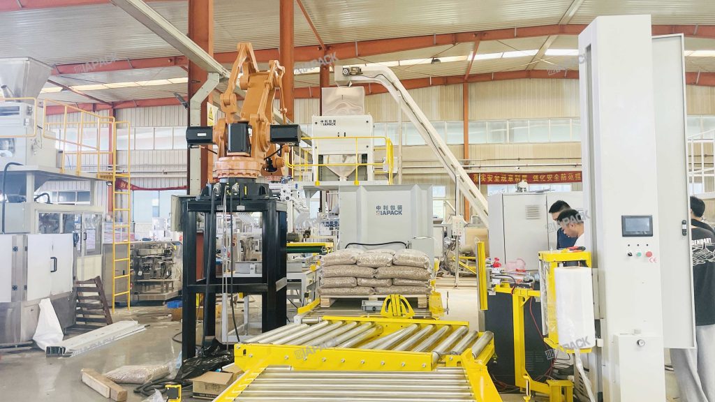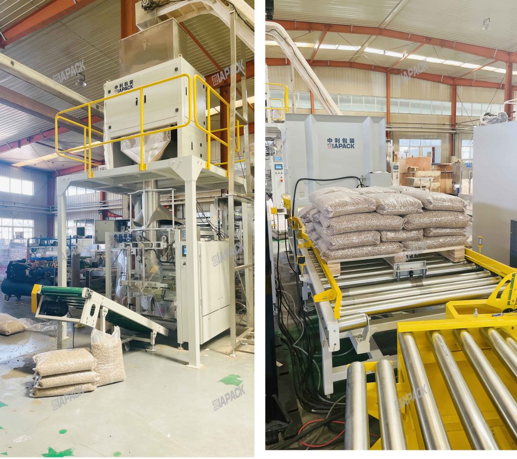 近日,我公司一套全自動15kg木質顆粒稱重、製袋包裝、碼垛生產線如期完工,經過機械工程師和軟體工程師的聯合測試,機器於8月4日發往目的國韓國。