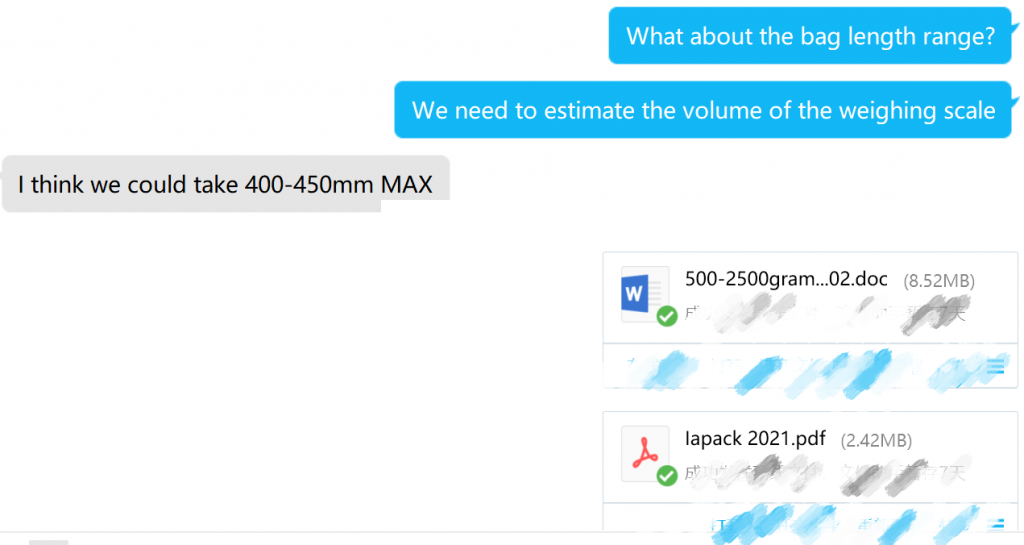 確認袋子尺寸和物料比重後,向客戶提供報價: