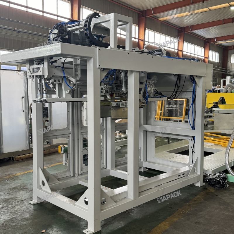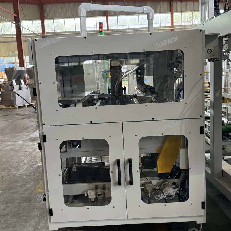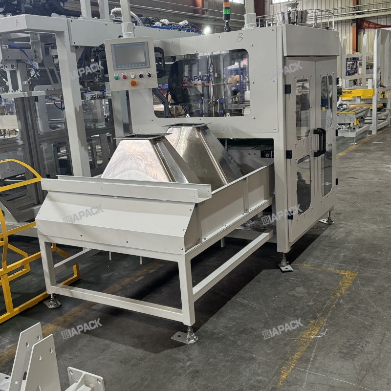 機組由儲袋倉、取袋整理裝置、裝袋機器人、夾袋卸袋裝置、推袋裝置、袋口引導裝置、真空系統、控制系統等組成。