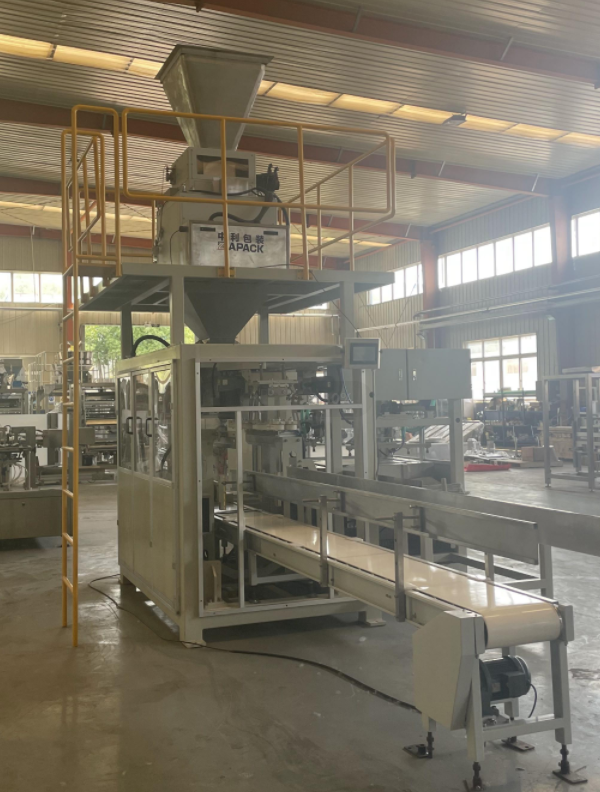 本機適用於大編織袋或牛皮紙袋或PE膜袋包裝顆粒狀物料,包裝重量範圍為25kg~30kg。