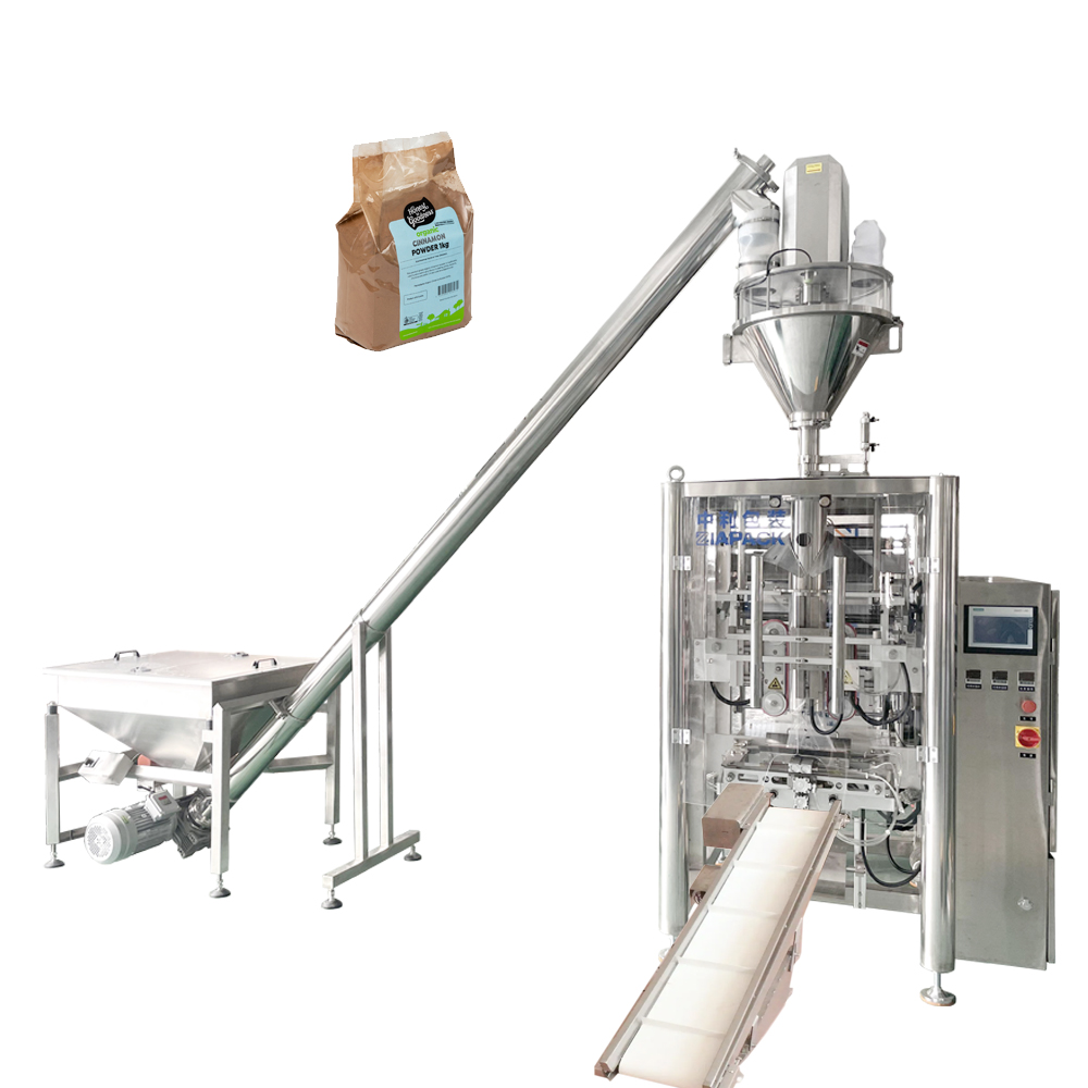 7.使用稱重或灌裝機,如多頭秤,容量杯灌裝機,螺旋填料或餵料輸送機,稱重,製袋,灌裝,日期打印,充電(排氣),密封,計數和交付成品的過程可以完成自動。
