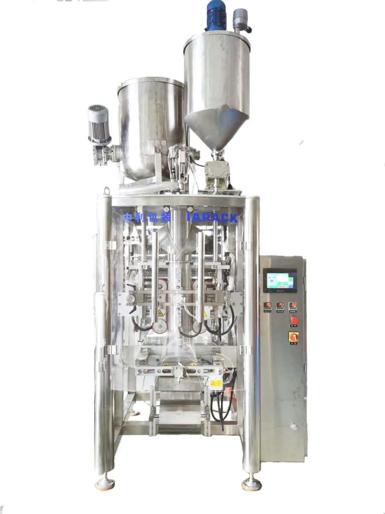 該裝置是為滿足流體和粘性產品的需求而開發的。機組由灌漿機和包裝機組成;該包裝機結構簡單,操作方便;該機集製袋、灌裝、封口、計數功能於一體。它採用伺服電機拉膜,並具有自動糾偏功能。