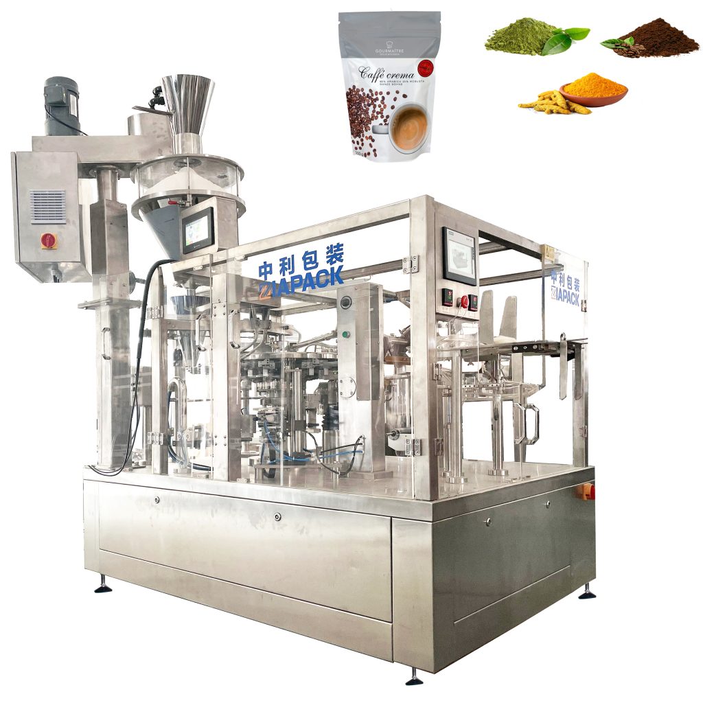 旋轉袋式包裝機 不同劑量(如多頭秤,螺旋填料,液體填料等),可適用於顆粒,粉末,液體,糊狀物等的自動包裝。不同種類的產品,帶有預製立式袋,扁袋和等等。