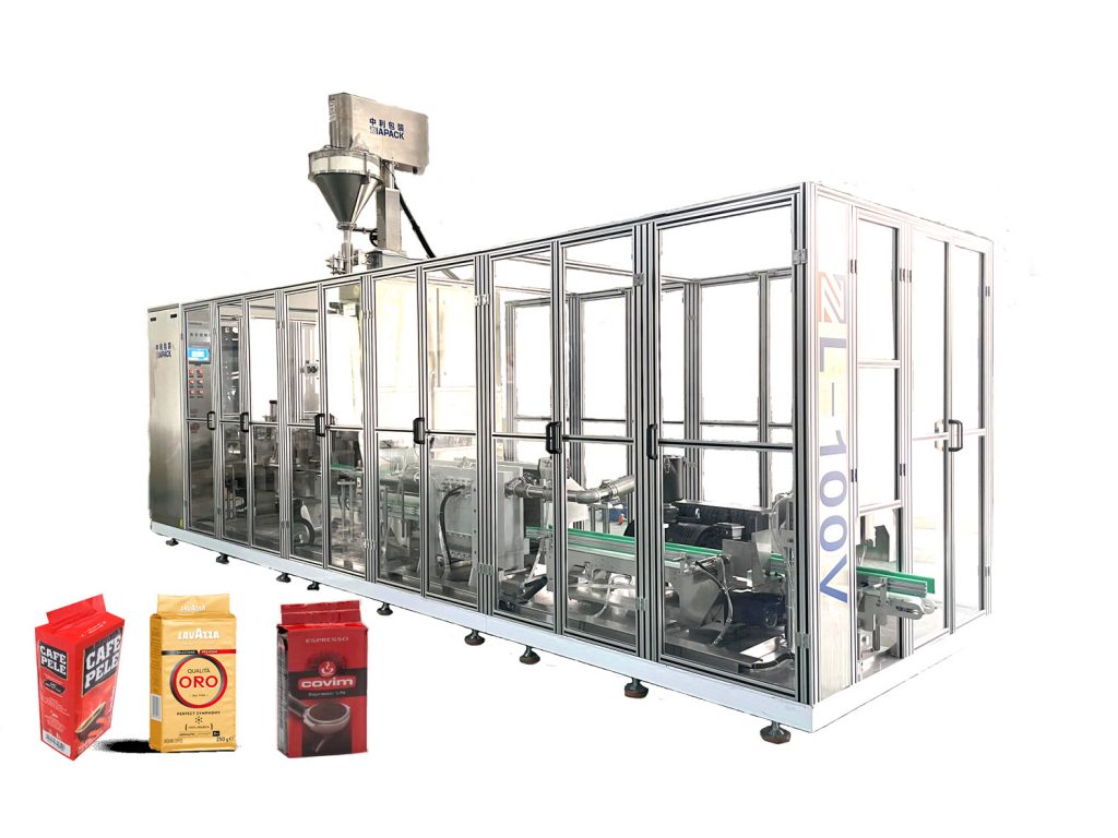 該機包括ZL520立式製袋包裝封口機一台,ZL2000雙鬥稱重機一台,ZL-100V真空包裝機一台,輸出輸送機一台。該機廣泛用於包裝食品醫藥化工等產品粉末或小顆粒。如咖啡粉、酵母粉等。整機採用內抽式真空產品。真空度很高,包裝速度很高,可以達到15袋/分鐘。成品很好,貨架長生活。