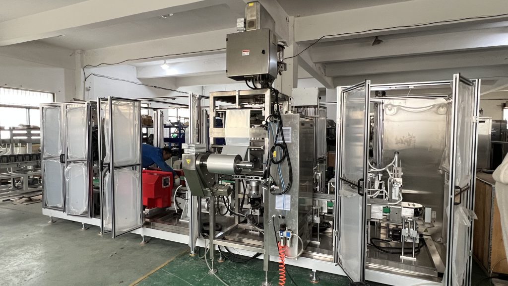 • 自動平底袋頂貼袋成型灌裝封口包裝包裝線是我們客戶訂購的自動平底袋頂貼袋成型灌裝封口包裝包裝線是我們客戶訂購的