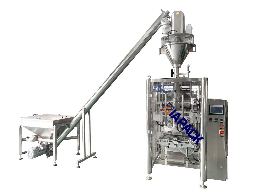該機組包括一台ZL520立式製袋灌裝封口機和一台ZL2000螺旋計量機。整機可實現自動製袋、產品稱重、產品灌裝封口和日期打碼。廣泛用於小麥粉、咖啡的包裝粉末和其他粉末產品。